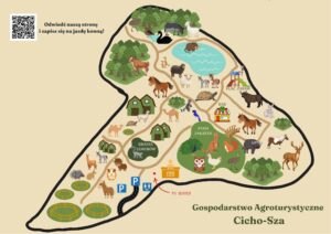 Plusem naszego gospodarstwa jest MINI ZOO, znajdujące się na całej powierzchni terenu. Znajdziecie w nim zwierzęta domowe jak i egzotyczne tj. strusie, lamy, alpaki, jaki tybetańskie, zebu karłowate, wielbłądy, bawoły, węgierskie bydło stepowe, szopy pracze, skunksy, kangury, makaki, wiele ras bażantów, kur ozdobnych, gęsi i kaczek, wiele kóz i owiec, nutrie, świnio-dziki, króliki i wiele, wiele innych.