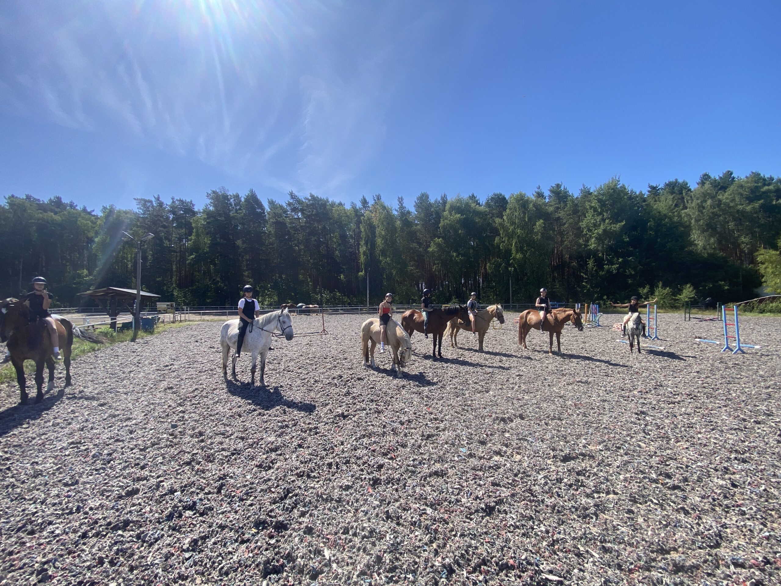 - Dwie godziny jazdy dziennie (od poniedziałku do piątku) i jedna jazda w sobotę na dobrze przygotowanych koniach, w grupach według zaawansowania jeźdźca